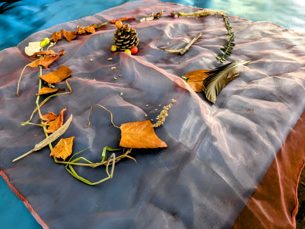 They explored the objects and then created mandalas, some individually and some together. The activity supported focus, cooperation, and sensory awareness, allowing each child to engage at their own pace and in their own way.